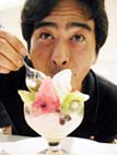 今日は、菊っつぁんと久しぶりに長ネタ部会。やっぱり寿司は最高って事でパクパクと。その後、恒例のパフェを食べながら熱血トーク。最近思ってたことを、ぶちまけあった。なんか、やっぱり口に出して話し合わないと分からない事ってあるね。お互いに誤解してた事もあったりして、『なーんだ』なんて言ってさ。よかったよかった。やっぱり、いろいろ経験して来た人だけあって、いい事言ってくれるなー。これからの道を歩んで行ける力を分けてもらった気がした。ありがとう。