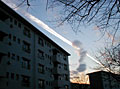 2人をバス停まで送って行って、買い物してから帰ろうとしたら、とっても立派な飛行機雲。なんか得したな〜。その後お風呂に入ったら、なんだか足の裏に水がしみた。昨日のか〜。そう言えば腰とモモも痛いダス。 2002.01.17