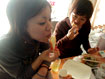 2002.12.08 なんだか死んだように昼まで眠る。起きて、頂きものの『うまい棒』をボリボリと食べる。うう、昨日の火傷にサクサクささって痛い・・・。でも、うまい・・・。今はいろんな味があるんだねぇ。 夜はシマックとヤスが出演するライブがあったので、渋谷へ。シズカちゃんと合流して一杯引っ掛ける。ヤスのキーボード演奏姿は格好良かったし、シマックのサポートしたバンドも楽しかったぁ。他にも友達や、知り合いなんかにも会えて良かったわん。ヤスがカメラ★ライフトートバッグを愛用してくれててうれしい。仕事がヤバめだったので、行くのをちょっとためらったんだけど、行って良かった。さて、明日上げの仕事を頑張るぞー。 2002.12.07 お昼頃に起きだして、結婚式で当てたホットサンドメーカーを使って朝食を作る。みんなで協力して作っていると、まるで共同生活をしているかのようで楽しい。簡単においしいホットサンドができた!いいもの頂きました。それから、頂きものの紅茶も入れてみんなで「おいしー」と飲む。ありがたや、ありがたや。 母親から電話が入ったので、父親と3人で夜ご飯を食べに行く。私は揚げ立てのコロッケの中身(しかも、一口め)で口の中を火傷して流血。情けないです。そして、母親と新しく出来たというスーパー銭湯へ。フハー。仕事しなくっちゃなー。 2002.12.06 インタビューを受けるために池袋で待ち合わせ。テープレコーダーを前に話すのはちょっと緊張するけど、インタビュアーの女性がとっても聞き上手なので、私も日々思っている事を素直に話す事ができました。また、理解してくれてるというのが伝わって来たので、余計に力を込めて語ってしまいました。カメラ★ライフを始めたきっかけ。そこから得たもの。写真を撮る時に意識していること。話しながら、自分でも整理が出来て『ああ、そういう風に考えてたんだなぁ』なんて思ったりして。どんな記事が出来て来るのか楽しみです。